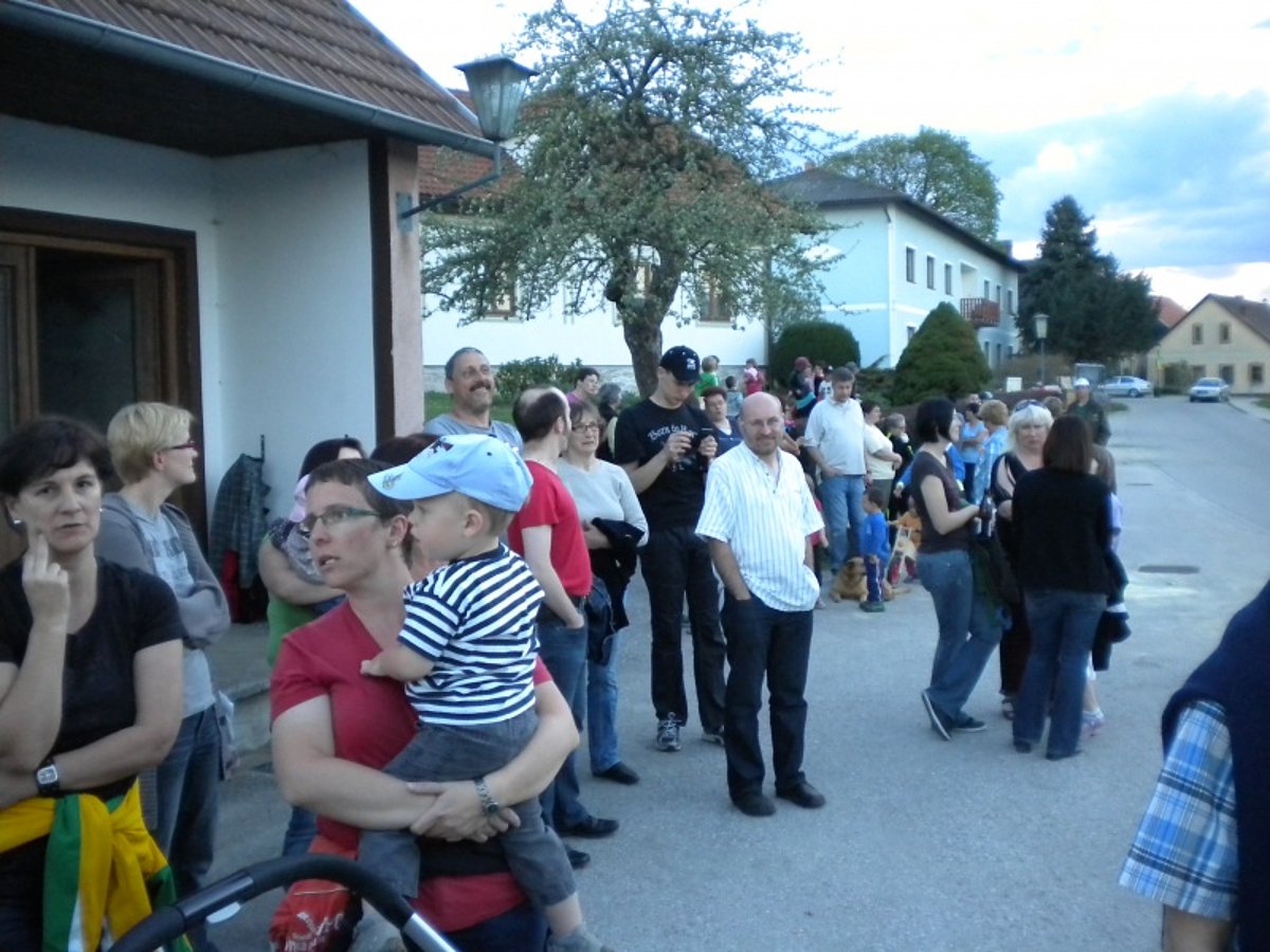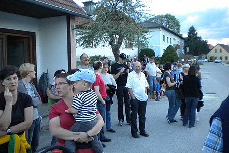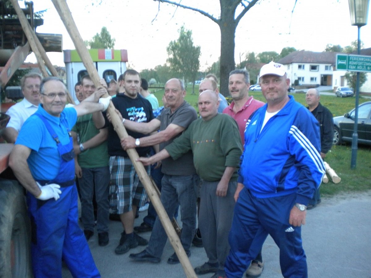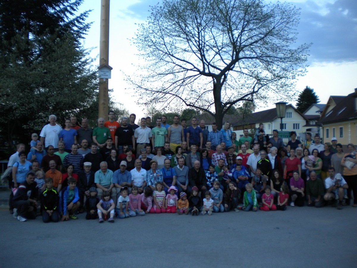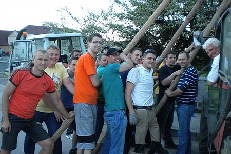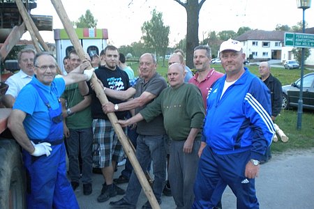 Jugendobmann Markus Rabl dankte nach getaner Arbeit den zahlreichen Helfern und dem Maibaumspender und lud alle zu einer Stärkung in den Keller der Familie Hipp ein. Dort gab es Bratwürstl und Bier und zum Nachtisch zahlreiche Mehlspeisen, zur Verfügung gestellt von den Dorffrauen.