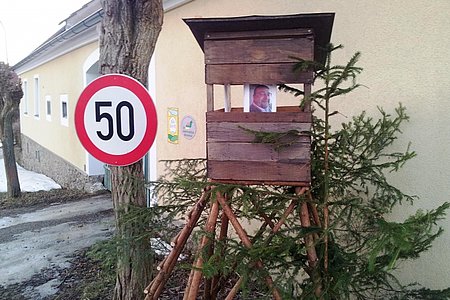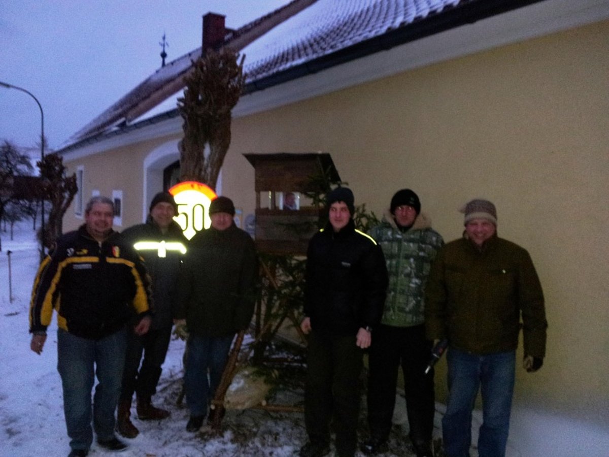 Bei jedem wurde ein Mini- Hochstand vor dem Haus aufgestellt, ein kleines Geschenk überreicht und auf den jeweiligen Jubilar angestoßen.
