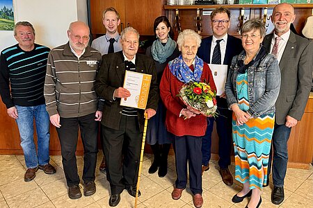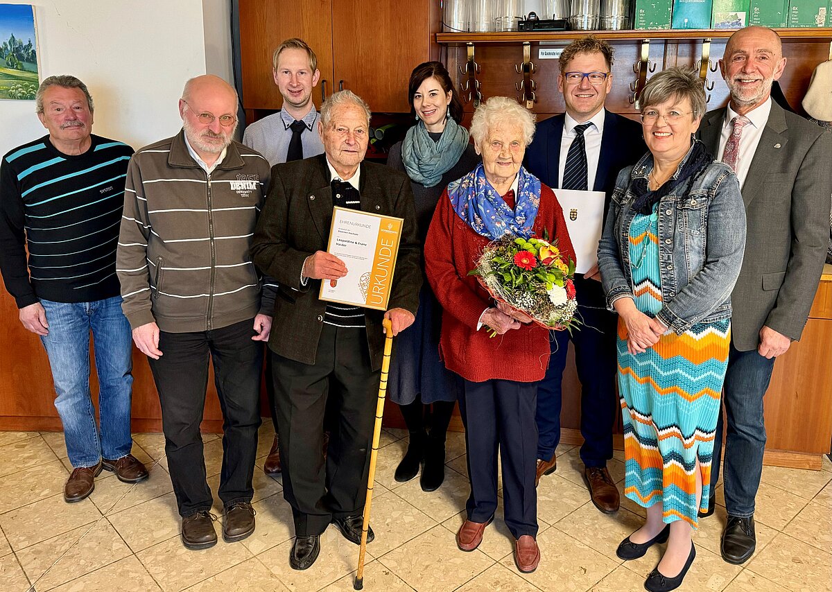 Leopoldine und Franz Haider aus Windhof schlossen am 31. März 1959 den Bund der Ehe. Das besondere Fest der „Eisernen Hochzeit“ feierten sie am 02. April im Kreise ihrer Familie im Gasthaus „Harrys Thayaquellenhof“. Dazu gratulierten dem sehr rüstigen Jubelpaar herzlichst Bezirkshauptmann Dr. Markus Peham, Bürgermeister Josef Schaden sowie Pater Daniel Gärtner.