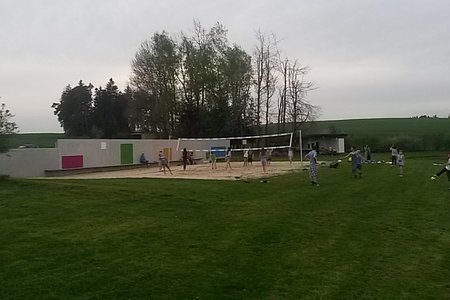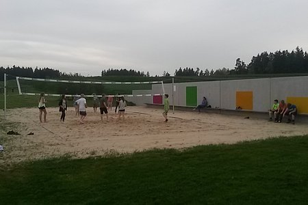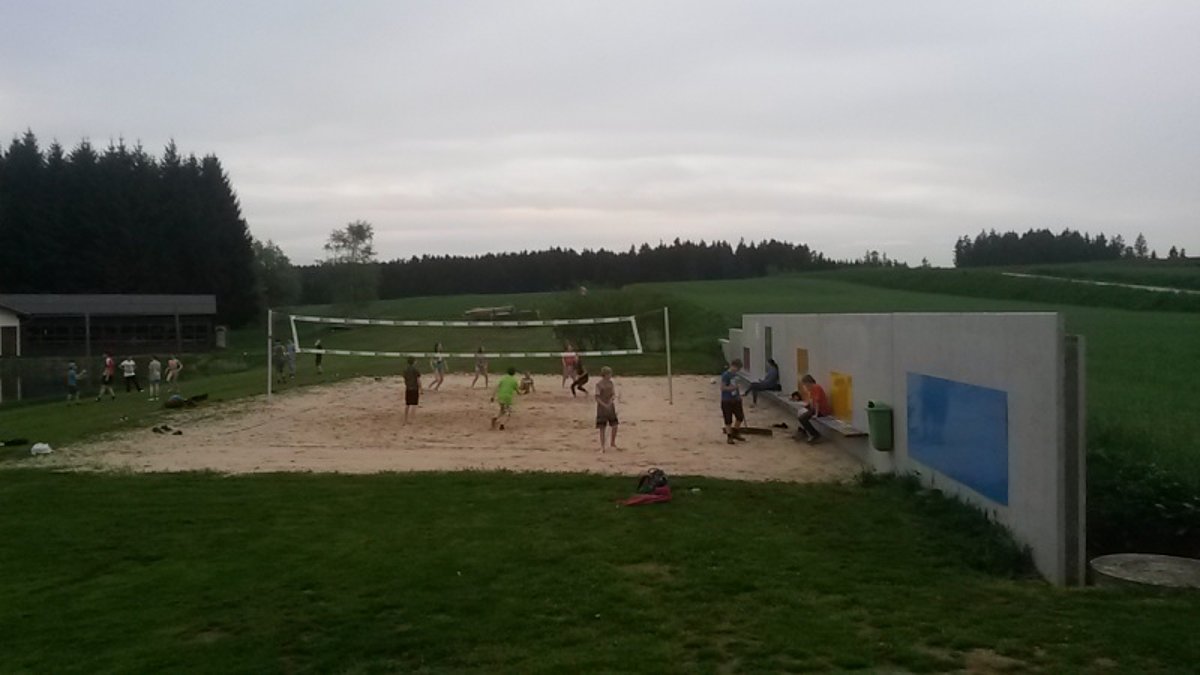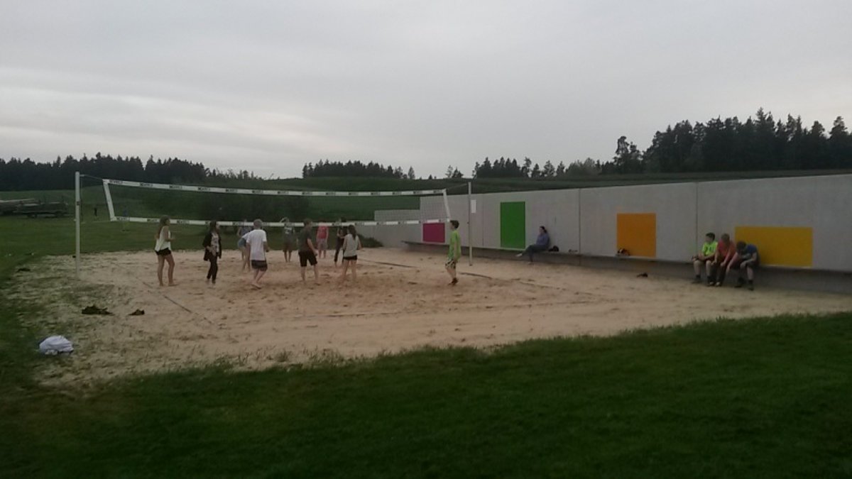 Am Dienstag, dem 5. Mai 2015, wurde der Beachvolleyball-Platz am Pfarrerteich wieder fit für die Saison gemacht. Dabei wurden an der Wand verschieden färbige Blechtafeln angebracht. Mithilfe dieser Tafeln wurden die ausbetonierten Fenster abgedeckt. Durch die unterschiedlichen Farben wirkt die Mauer viel moderner und passt sehr gut zum „Bunten Dorf“. Zusätzlich wurde auch das Beachvolleyballnetz montiert. Die Teichanlage wurde auch in den letzten beiden Tagen gemäht und auf Vordermann gebracht.