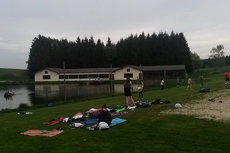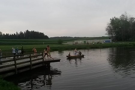 Eine Schülergruppe aus dem schönen Zillertal nutzte auch gleich die Gelegenheit das Angebot der Sallingstädter Teichanlage auszuprobieren. Einige Kinder nutzten den Beachvolleyball-Platz oder die Liegewiese zum Fußballspielen. Andere suchten aber schon Abkühlung im Pfarrerteich.