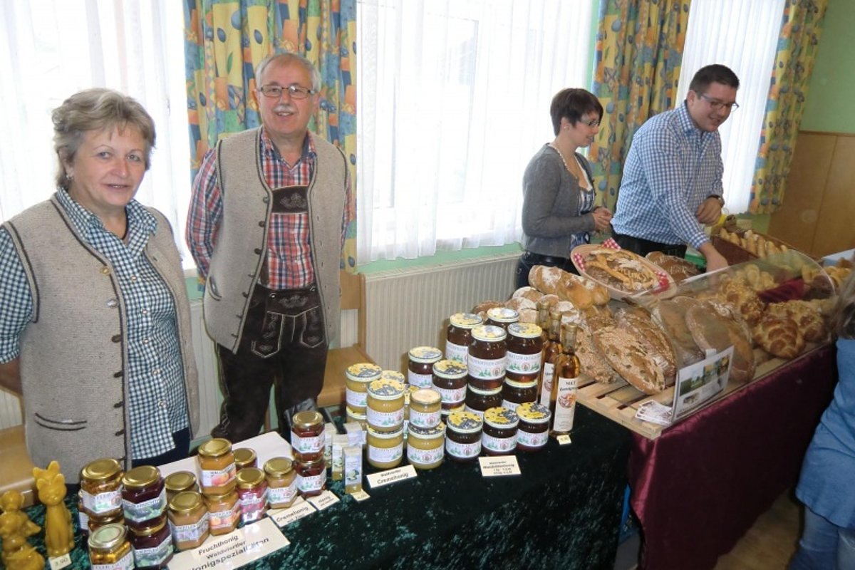 Nach dem kirchlichen Teil begann die weltliche Feier im Jugendgästehaus und Dorfwirtshaus Sallingstadt. Dort wurden beim Bauernmarkt viele heimische Produkte angeboten: Gebäck von der Biobäckerei Hölzl, Honig und Honigprodukte von der Familie Pfeiffer, bäuerliche Produkte von der Familie Zauner, Käse von der Fa. Kretschmer und Mehlspeisen vom Verschönerungsverein Sallingstadt und Umgebung. Kurz vor der Mittagszeit fand die Verlosung des „40-Fragen-Rätselspiels“ statt. Die insgesamt 40 Fragen waren anlässlich des 40-Jahr-Jubiläums des Verschönerungsvereins entlang des neuen Tut-gut-Wanderwegs zu finden. Seit Ende Mai hatten die Bewohner aus Sallingstadt, Walterschlag und Windhof die Möglichkeit, anhand einer kurzen Wanderstrecke alle Fragen zu beantworten und somit bei der Verlosung teilzunehmen. Von den insgesamt 53 Teilnehmerinnen und Teilnehmer wurden drei Preise für die Kinder und weitere drei Preise für die Erwachsenen verlost.
