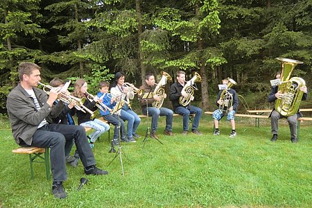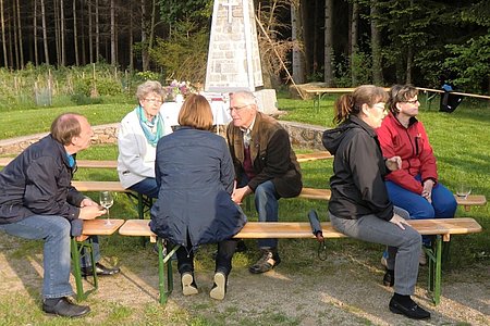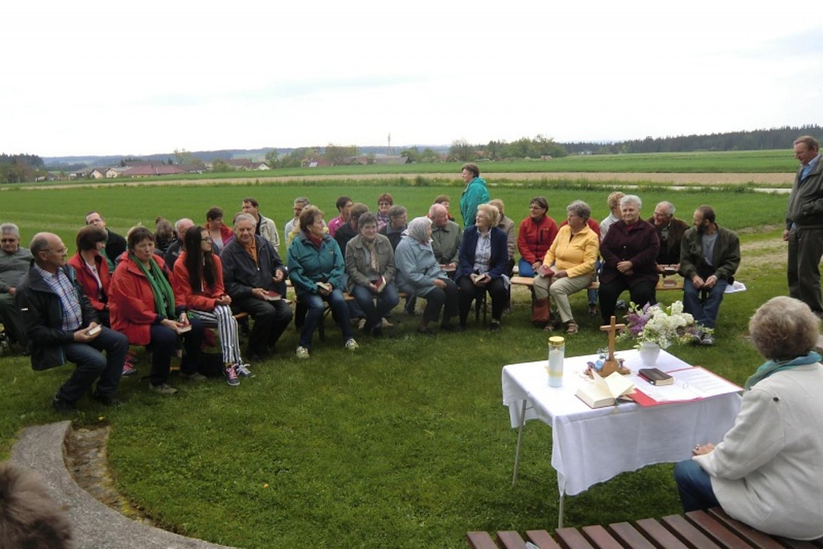 Der aussagekräftige Spruch bei der Bernhard-Oase in Walterschlag „Du wirst mehr in den Wäldern finden als in den Büchern, die Bäume und Steine werden dich Dinge lehren, die dir kein Mensch sagen wird“ kann als Leitgedanke für eine Maiandacht im Freien gesehen werden. Das Wetter ließ es nämlich zu, dass zu Christi Himmelfahrt um 17:00 Uhr bei der Bernhard-Oase die Maiandacht unter freiem Himmel gehalten werden konnte. Insgesamt folgten 51 Personen der Einladung und so war es nicht nur eine Gemeinschaft im Glauben, sondern auch eine gesellige Runde, die sich im Anschluss bei der Agape gut unterhielt. Die Andacht wurde von Helene Scheidl sowie Walter Gretz gehalten und musikalisch von den Familien Poppinger und Scheidl umrahmt.