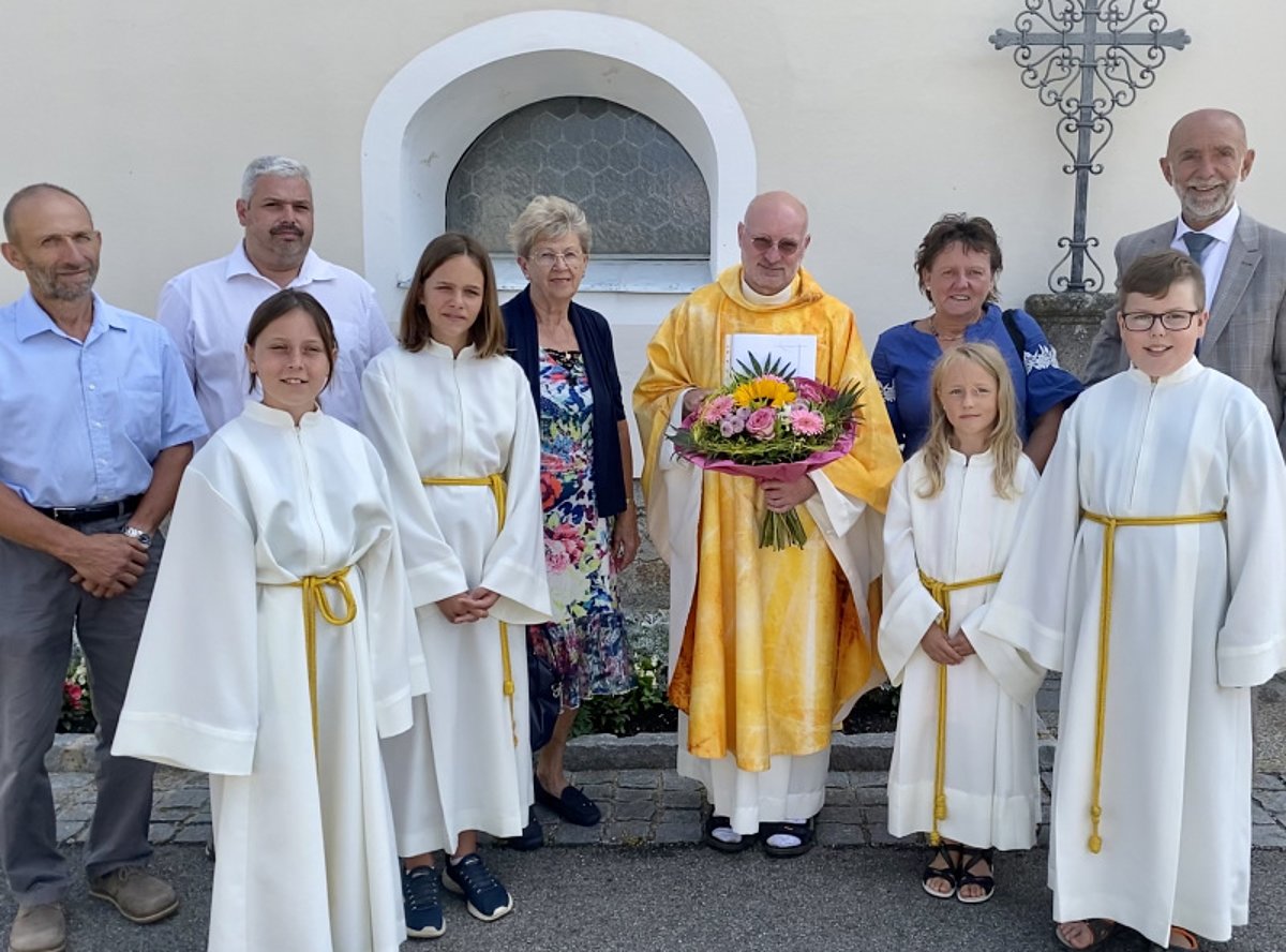 Am Sonntag, dem 25. Juli feierte die Pfarrgemeinde von Sallingstadt gemeinsam mit ihrem Pfarrer P. Daniel Gärtner ein Fest. Nicht nur findet Ende Juli das traditionelle Kirchweihfest zu Ehren des Hl. Jakobus statt, sondern auch Pater Daniel hatte allen Grund zu feiern. 25 Jahre ist es her, dass dieser der katholischen Kirche die ewige Treue als Priester geschworen hat. Zu diesem Anlass gratulierte auch Bgm. Josef Schaden: "Wir sind stolz in Sallingstadt einen Pfarrer zu haben und gratulieren Pater Daniel zu dem Ehrentitel 'geistlicher Rat' und seinem silbernen Priesterjubiläum".