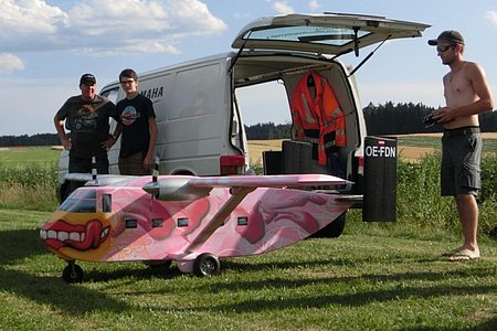 Martin Zemann baute das kombinierte Transport- und Passagierflugzeug des Pink Boogie Fallschirmspringerclubs im Maßstab 1:5 nach und machte es nach einigen Umänderungen letztendlich flugtauglich. Das Modell hat ein Gewicht von ca. 19 kg, eine Spannweite von geschätzten 4,2 Metern und wird von zwei Elektromotoren angetrieben. Auf Grund des Gewichtes reicht der Akku leider gerade mal für knappe 10 Flugminuten. Das Skyvan-Modell ist durch die Bemalung, die von Franz Leitner nachvollzogen wurde, in der Luft dem Original wirklich täuschend ähnlich. Man kann dem Besitzer dazu gratulieren und ihm noch viele crashfreie Flüge damit wünschen.