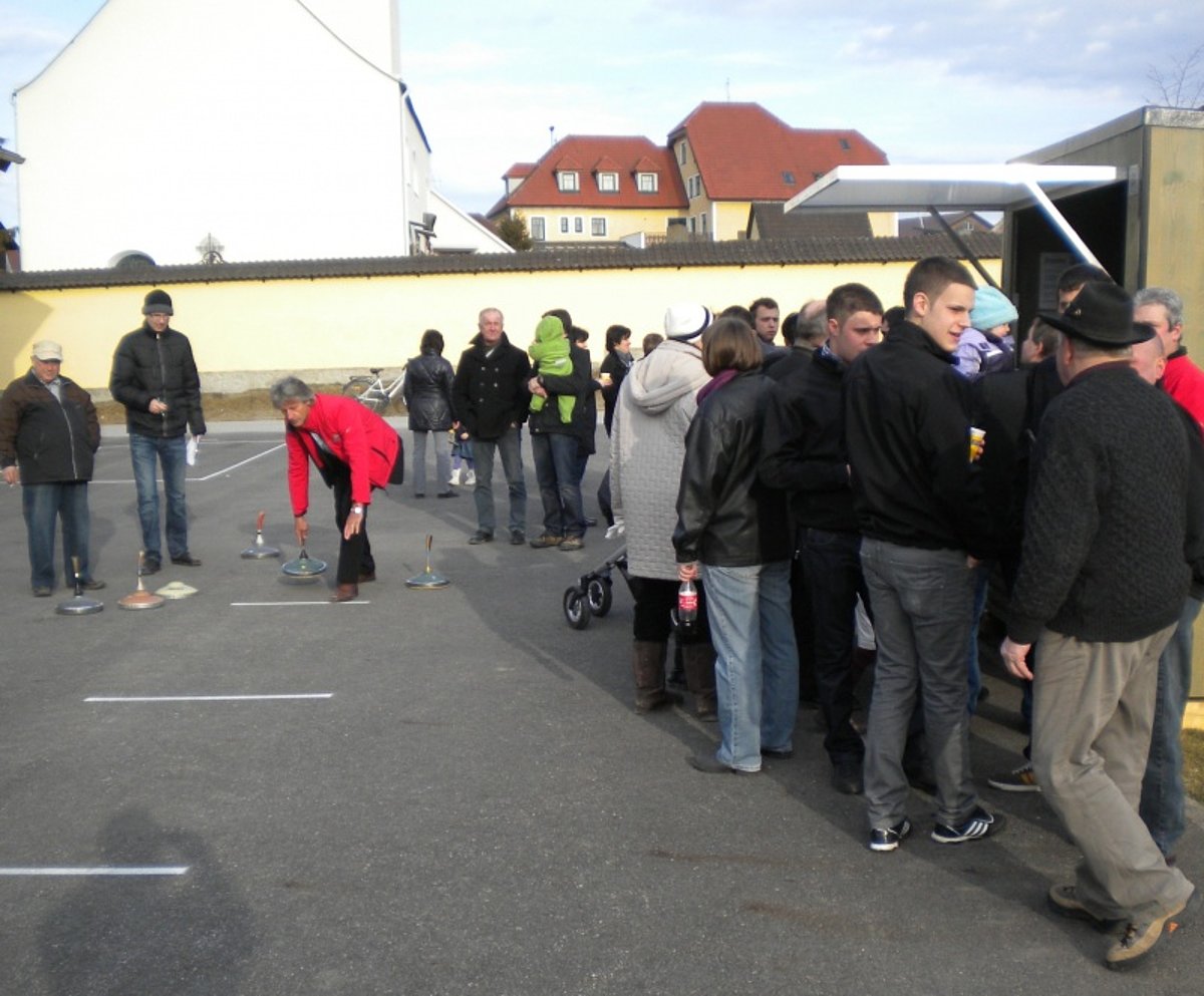 Am Sonntagnachmittag, den 4. März, fanden sich viele eifrige Stockschützen diesmal vor der Lagerhalle der Familie Schaden ein und kämpften um die Preise beim diesjährigen Plattlschießen. Da am ursprünglichen Termin, den 15. Jänner, am Eislaufplatz kein Eis war, wurde auf den 4. März verschoben. Leider gab es wiederum kein Eis und so musste diesmal auf Asphalt geschossen werden.