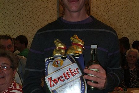 Insgesamt gab es rund 250 Ostereier, die alle eine Nummer erhielten und später dann per Los gezogen wurden. Nachdem der Moderator Georg Höllrigl in gekonnter Weise die Spielregeln erklärt hatte, wurde um ca. 21:00 Uhr mit der ersten Runde Eierpecken begonnen. Dabei gewannen Jennifer Witura, Markus Wally, Gertrude Hipp und Hermann Grassinger. Eine Stunde später gingen wieder vier Sieger hervor: Celina Grötzl, Harald Zauner und zweimal Franz Klenn. Das Finale mit den wertvollsten Preise wurde um ca. 23:00 Uhr ausgetragen: Die härtesten Eier dabei hatten Eduard Kaufmann, Martin Wally, Gerhard Klenn und Gerhard Hipp.