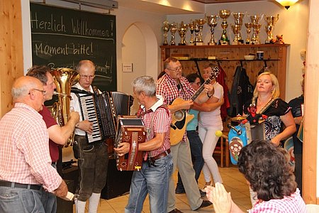 Das "Klingende Wochenteilen" im Dorfwirtshaus Sallingstadt nahm die beliebte Wirtin Roswitha Schaden zum Anlass, um ihren 50. Geburtstag gebührend zu feiern. Sie hatte dazu alle Musikanten und Gäste des Musistammtisches eingeladen, um sie mit regionalen Schmankerln am Buffet zu verwöhnen. Es gab geröstete Leber, Preßwurst sauer, Schweinsbraten, Geselchtes und zur späteren Stunde auch noch Beuscherl. Die Musikanten brachten ihr selbstverständlich ein Ständchen zum Geburtstag und ließen die Wirtin hoch leben. Der Hobbydichter Sepp Krapfenbauer verfasste ihren Lebenslauf in einem Mundartgedicht und trug es vor. Der Feuerwehr-Bezirksnachrichtendienst, vertreten durch Abschnittskommandant Ewald Edelmaier, Bezirkssachbearbeiter Josef Neuwirth, Abschnittssachbearbeiter Herbert Gruber und Abschnittssachbearbeiter-Stellvertreter Johann Raab gratulierten ganz herzlich. Und natürlich wünschten auch die Stammgäste des monatlichen Musikantentreffens alles Gute.